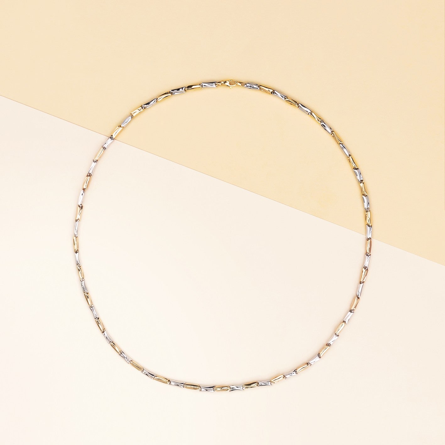 Catena uomo bicolore extra maglie forma Bamboo, realizzata in oro giallo ed oro bianco, effetto lucido. - Peso: 14,1 g