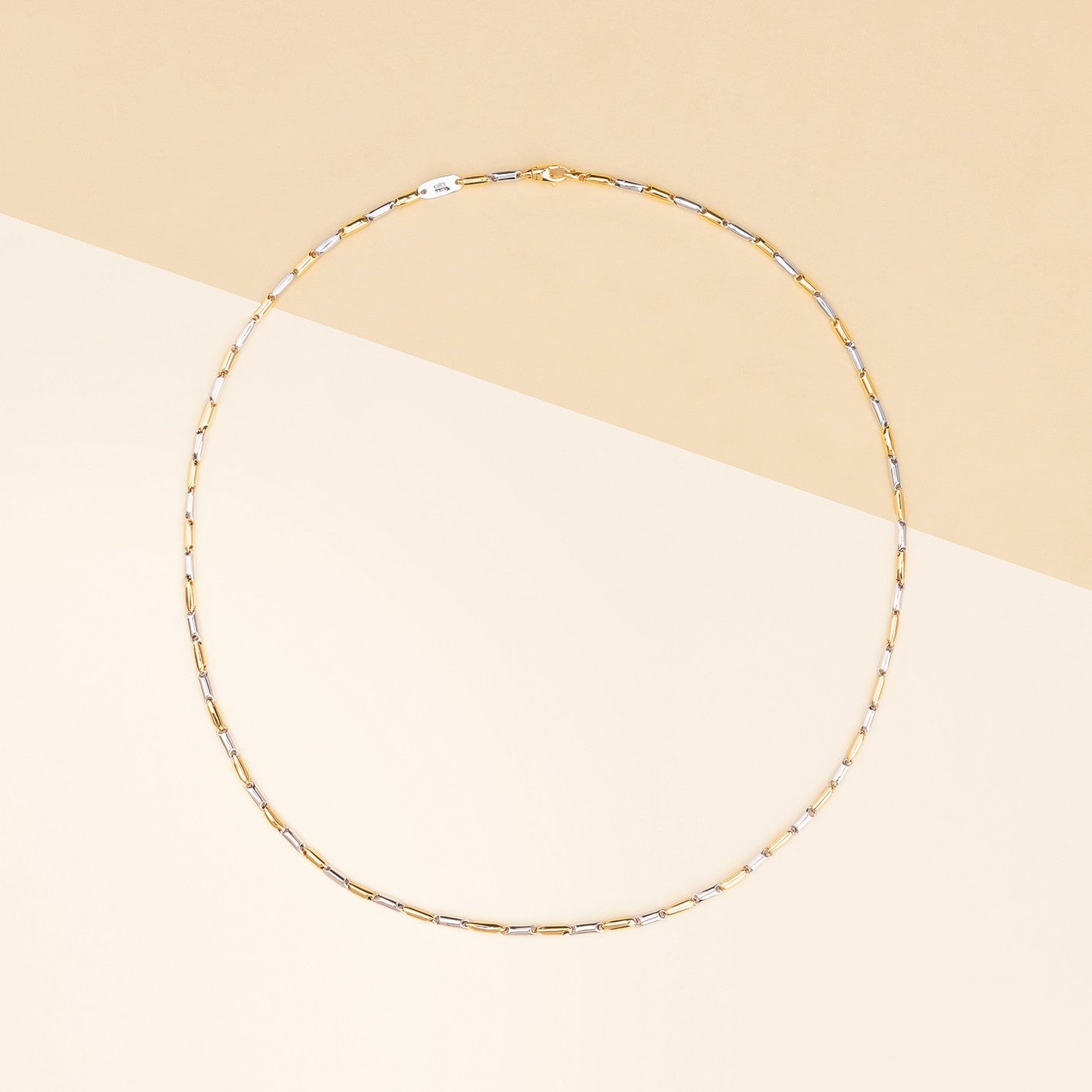Catena uomo bicolore extra maglia tubolare, realizzata in oro giallo ed oro bianco, effetto lucido. - Peso: 8,2 g