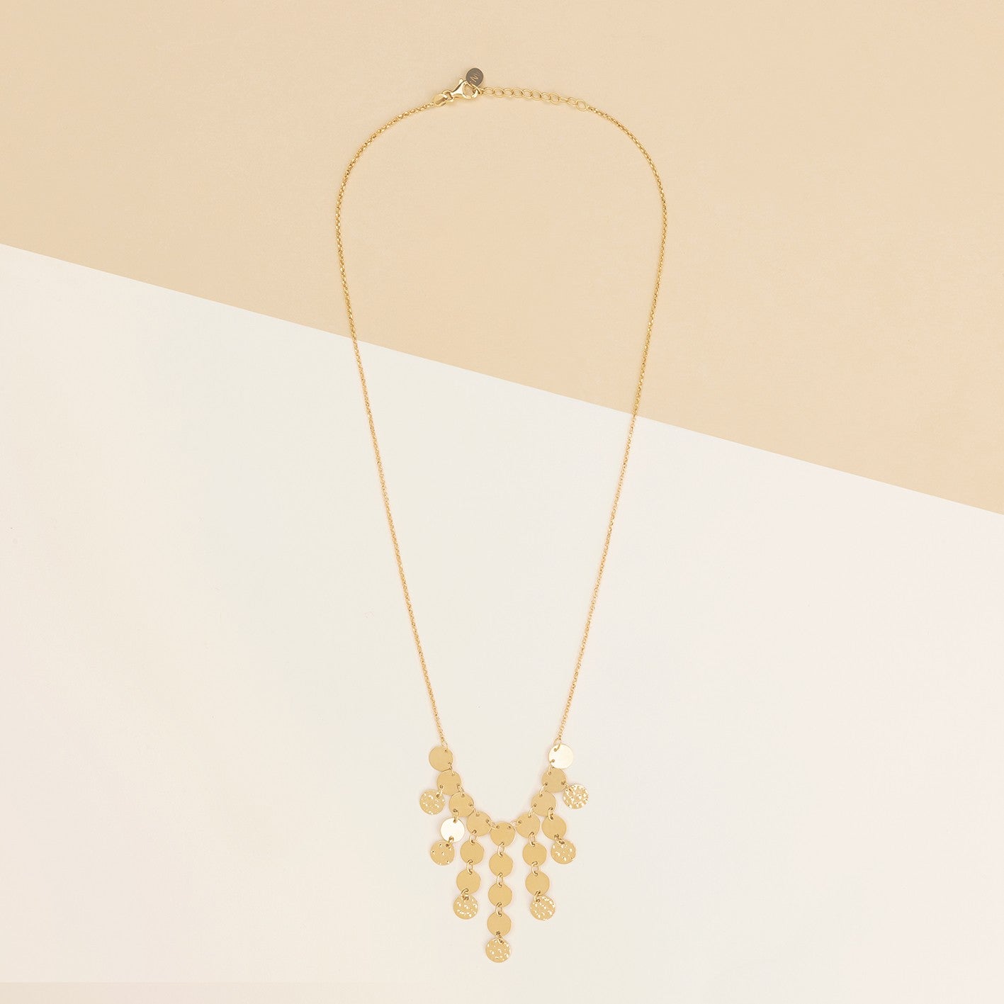 Collier donna in moving, realizzato in oro giallo e con centrale "in moving" caratterizzato da medaglie tonde lisce alternate a medaglie tonde faccettate. Diametro interno 45 cm. - Peso: 6 g