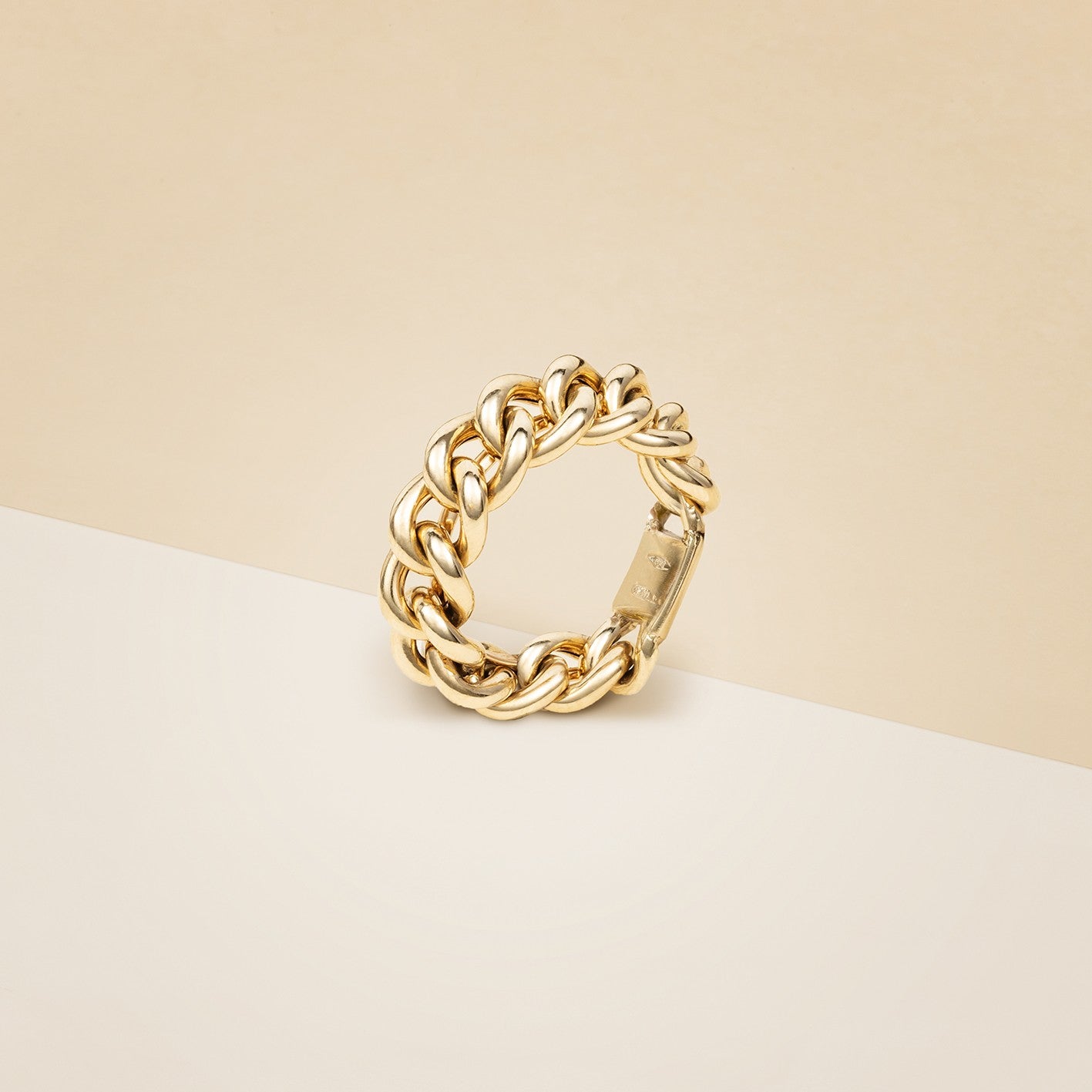 Anello donna grumetta, lavorazione a catena, di colore giallo. - Peso: 6 g
