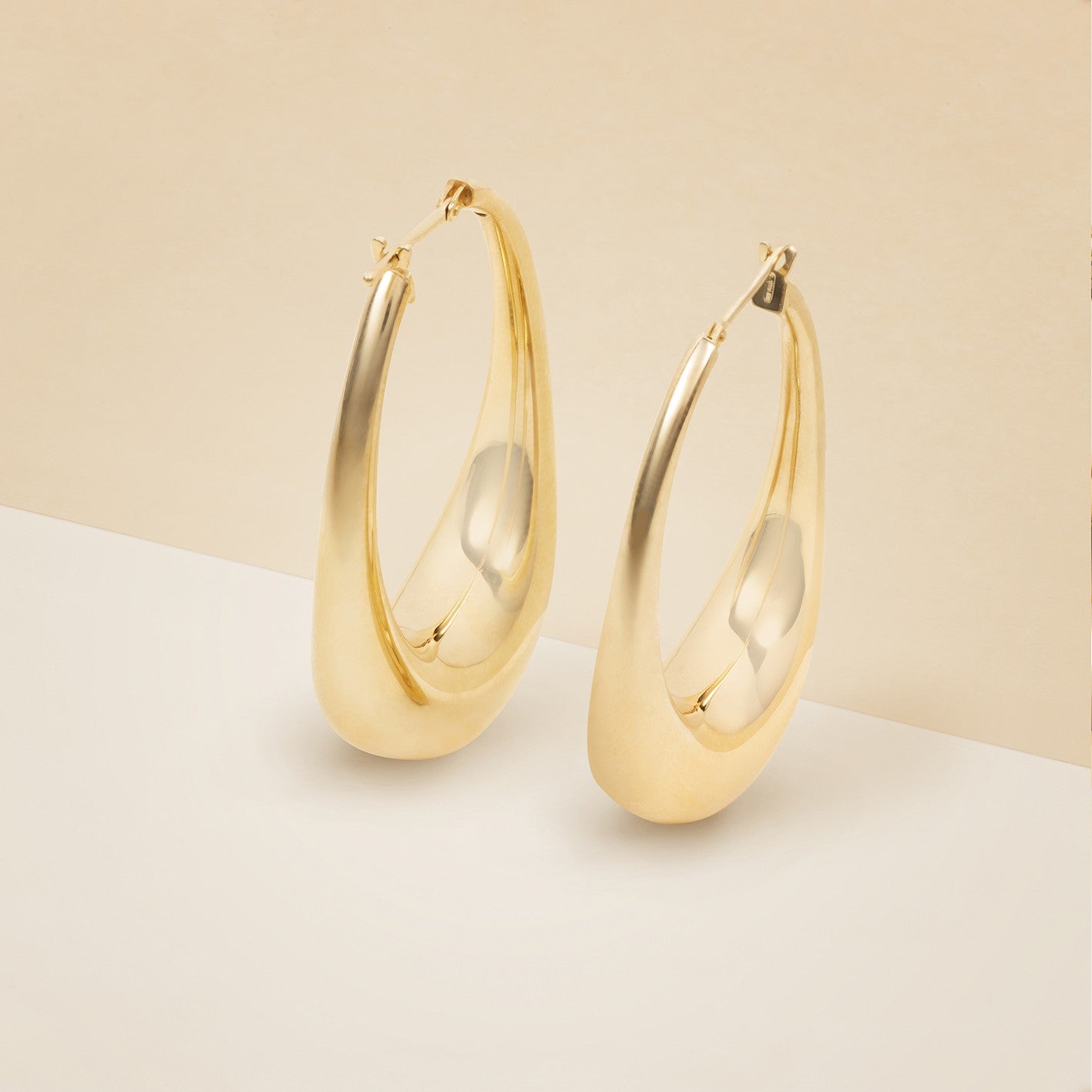 Orecchini a cerchio in oro giallo di forma ovale, lunghezza 3 cm. - Peso: 7 g