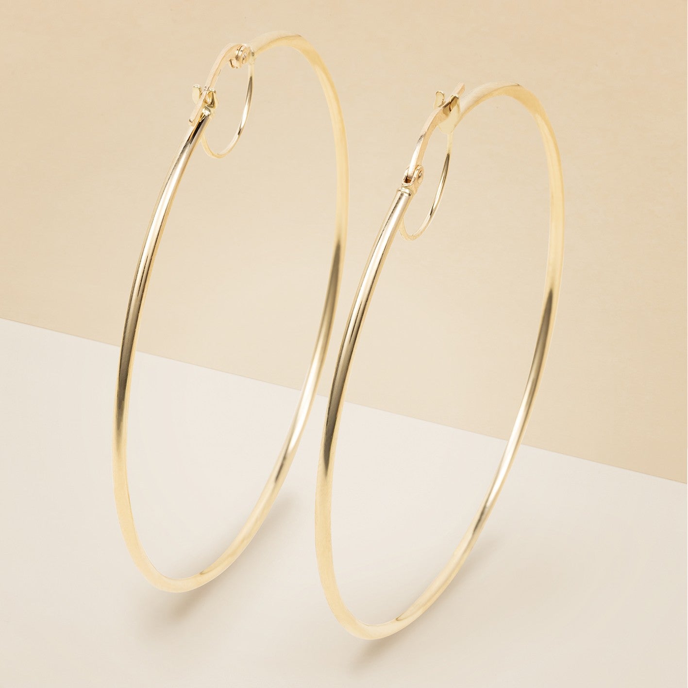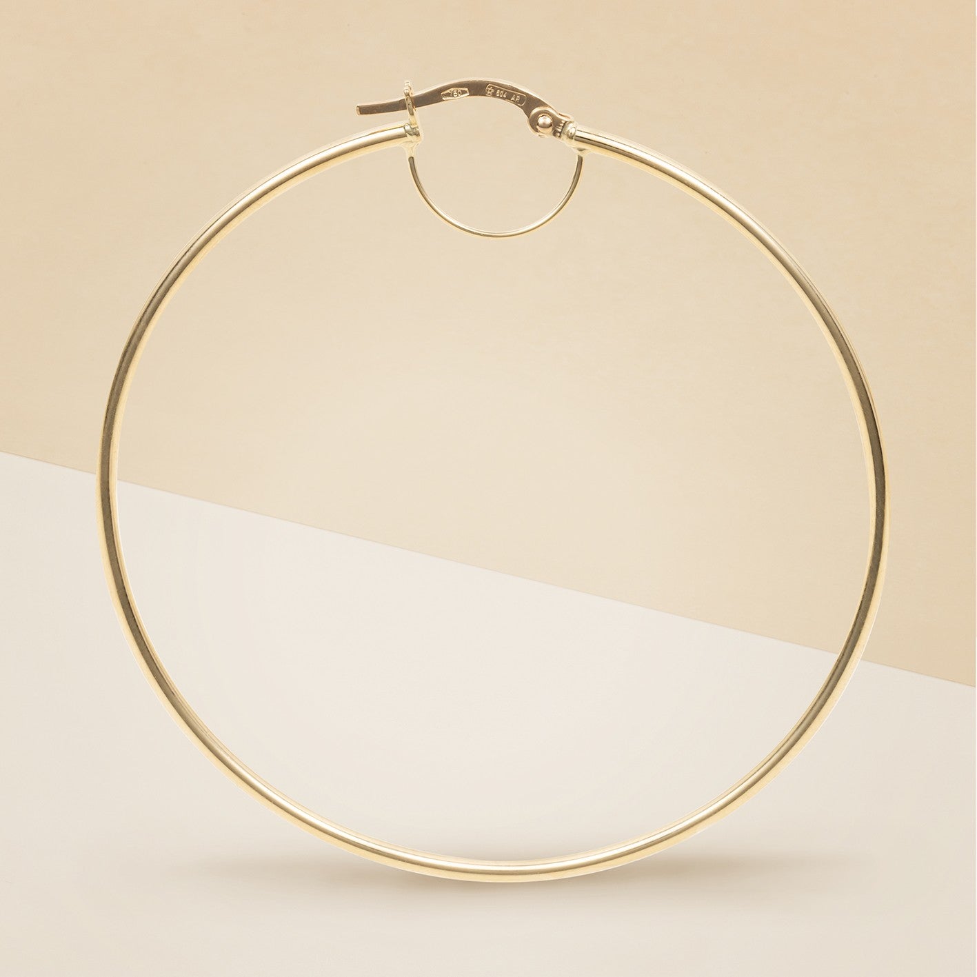 Orecchini cerchio tubolare, realizzato in oro giallo, annesso rinforzo di sicurezza ad altezza chiusura,effetto lucido, lavorazione "light", diametro 5 cm - Peso: 2,3 g