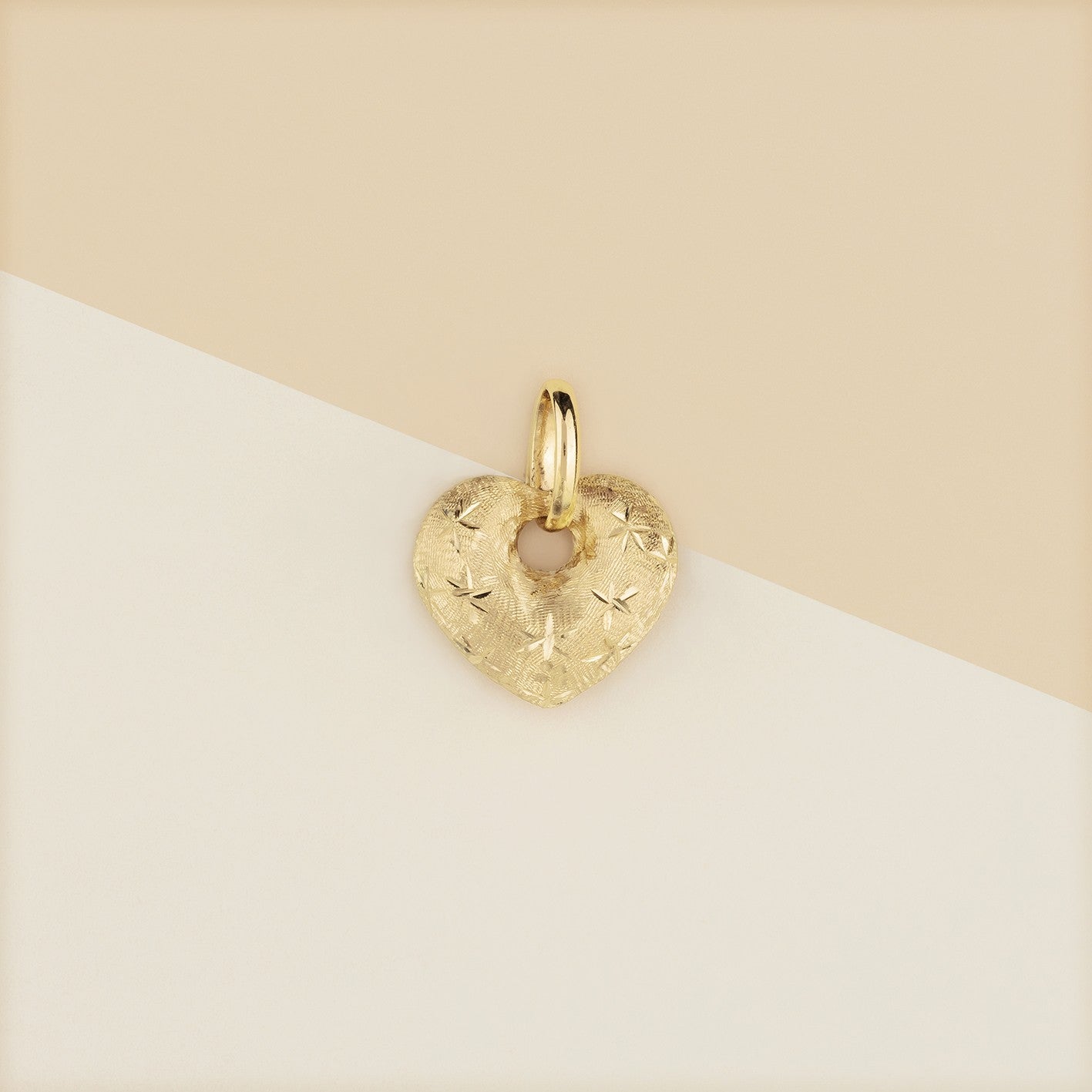 Pendente cuore satinato bombato in oro giallo - Peso: 2,7 g