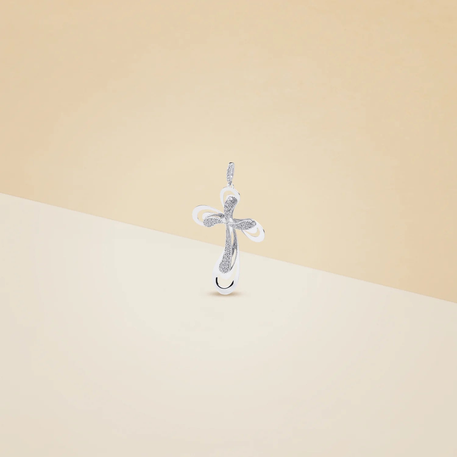 Pendente modello croce con zirconia lavorazione in oro bianco - Peso: 3,6 g