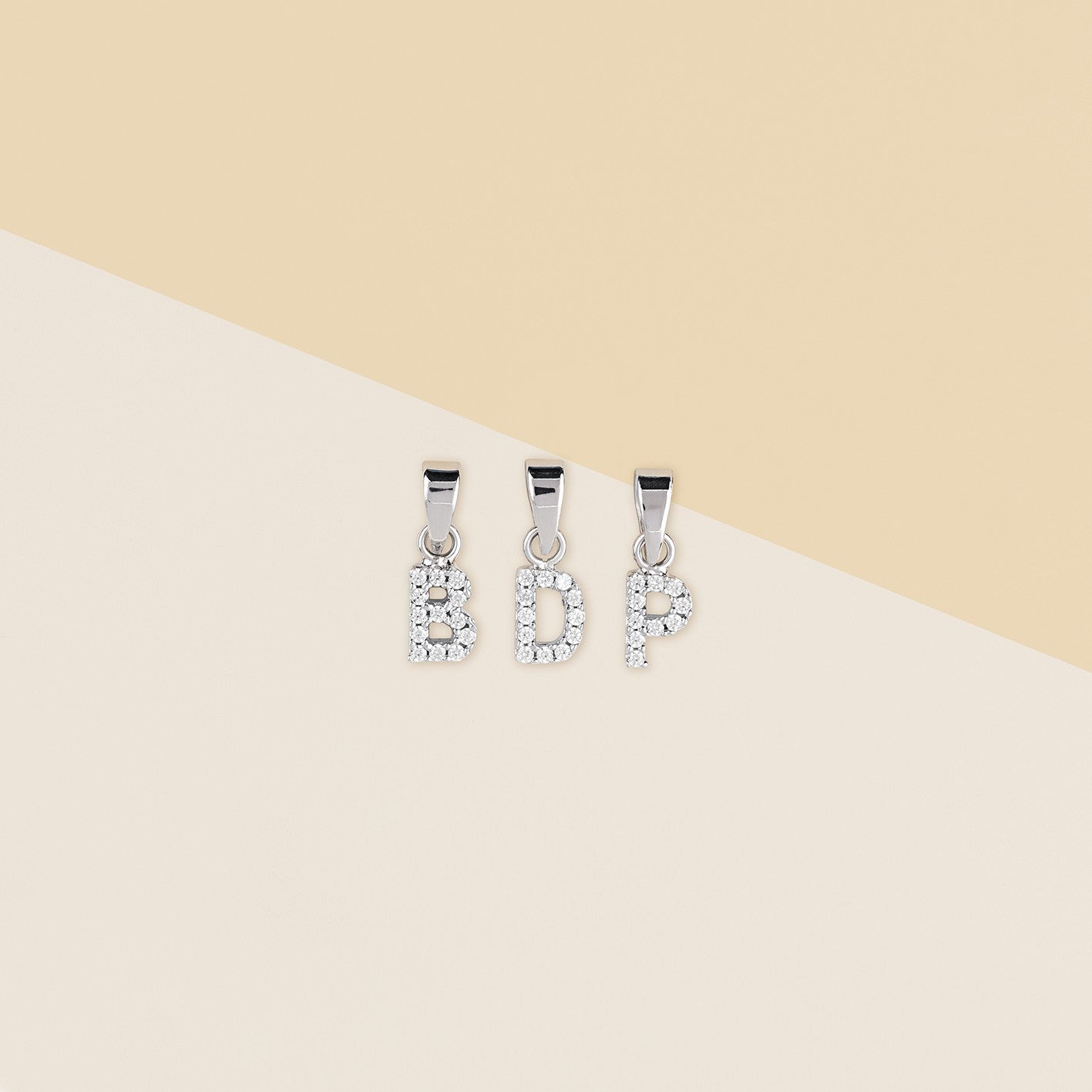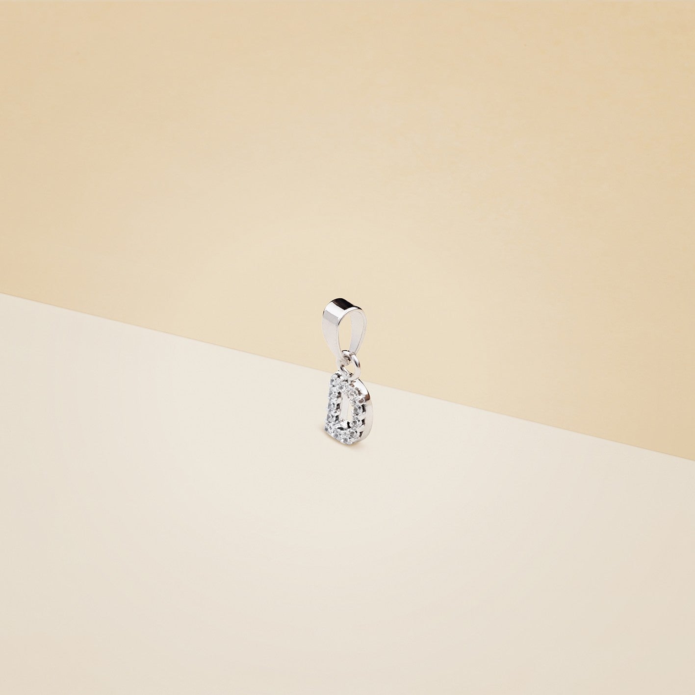 Pendente unisex lettera in zirconia oro bianco - Peso: 0,7 g