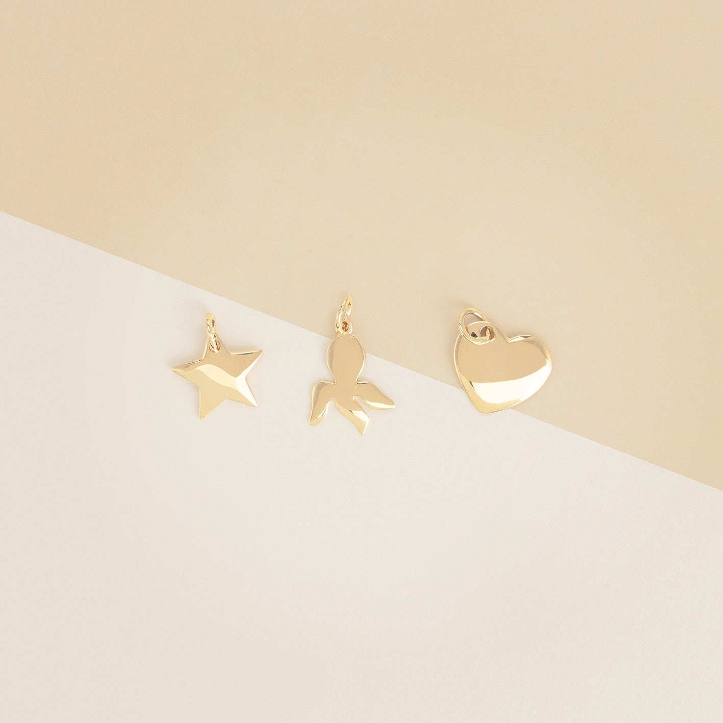 Pendente donna SUN, forma stella, polipo e cuore, realizzati in oro giallo, lavorazione piena. Larghezza 3.5 cm. - Peso: 3,9 g